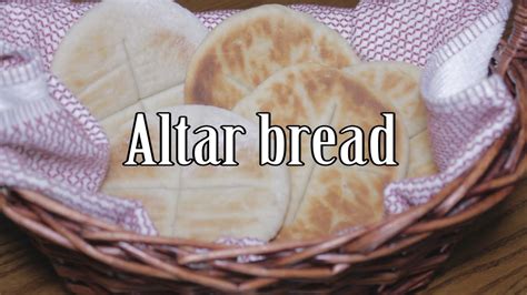 St gregory s abbey altar bread recipe 3 4 cup whole wheat flour 3 4 cup all purpose flour 1 tsp sugar 1 8 tsp salt 1 2 tsp yeast 1 2 cup warm water 100 mix dry ingredients slowly add water knead into a smooth ball cover and let rise 30 mins preheat oven to 275 take small amounts and roll out with rolling pin to 1 4 inch thick